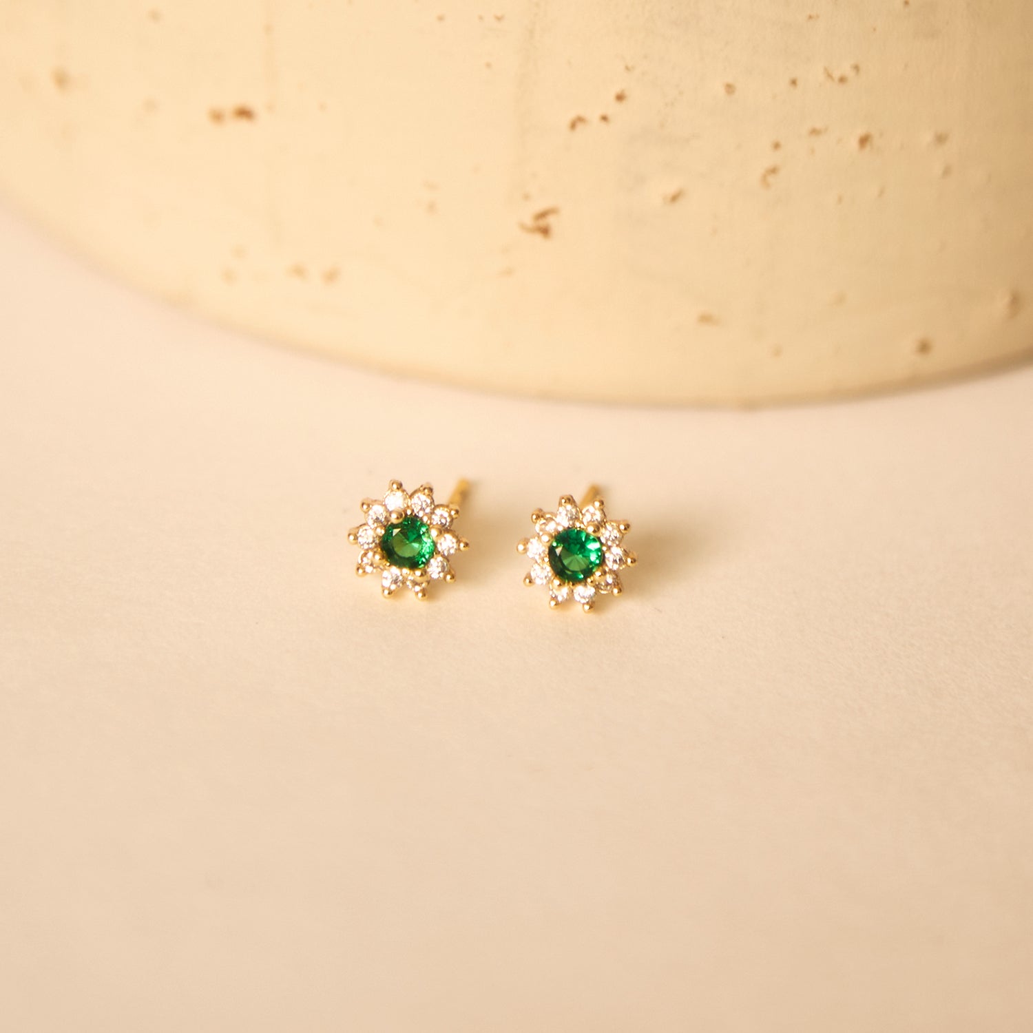Material: Bronce con baño en oro de 24k, con circones blancos y verdes